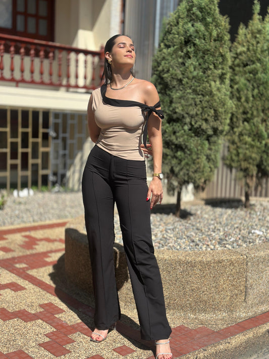 Nuestros pantalones de tela de tiro alto están diseñados para estilizar tu figura y brindarte un ajuste perfecto. Combinan elegancia y comodidad, siendo ideales tanto para el día a día como para ocasiones especiales.