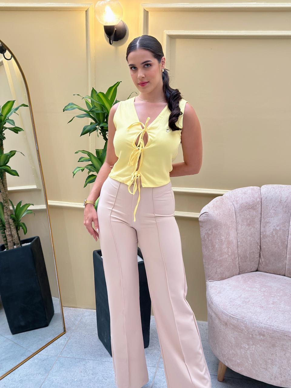 Una prenda fresca y delicada que resalta tu estilo femenino. Diseñada en tela ligera, esta blusa tipo chaleco se ajusta con tres moños en la parte delantera, creando un detalle romántico y moderno a la vez. Perfecta para usar en días cálidos, combina comodidad y tendencia, dándole un toque único a cualquier outfit.